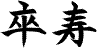 90 | Sotsuju | 【卒】 A abreviação deste KANJI é 【九十」que significa o número 90. |